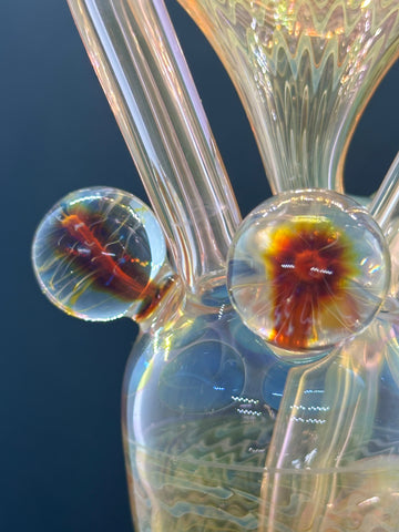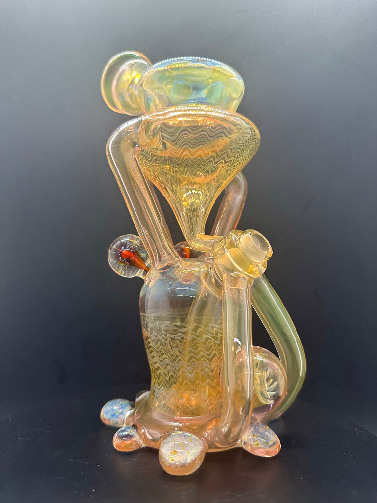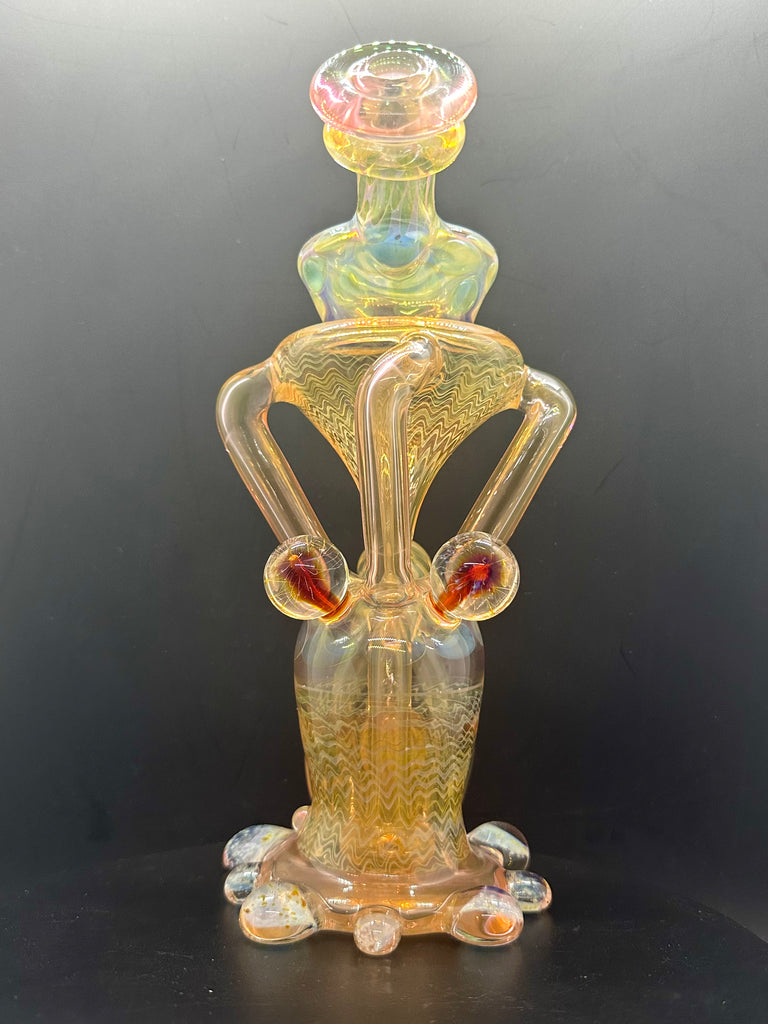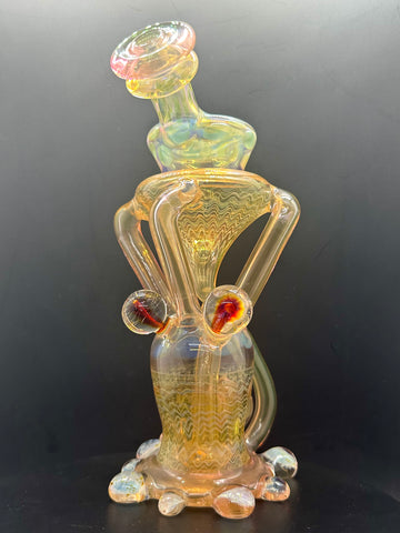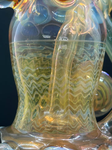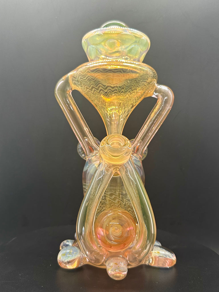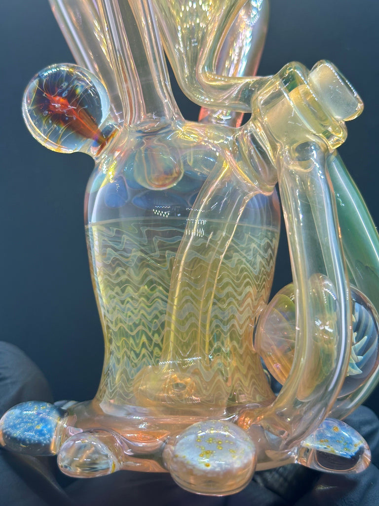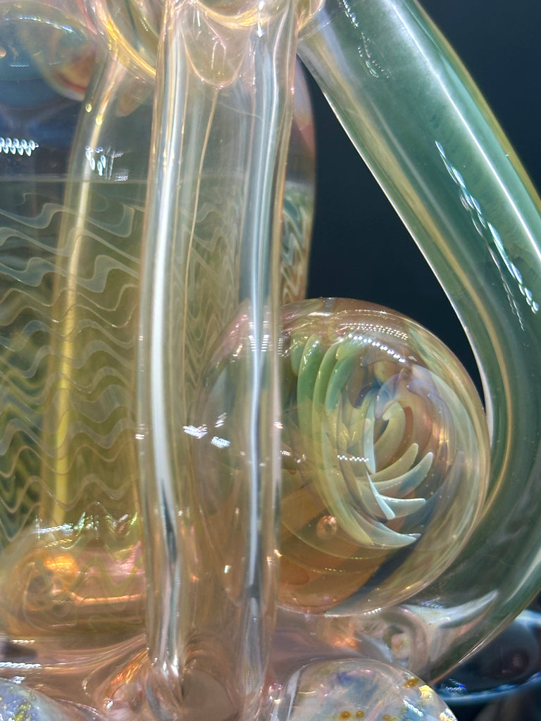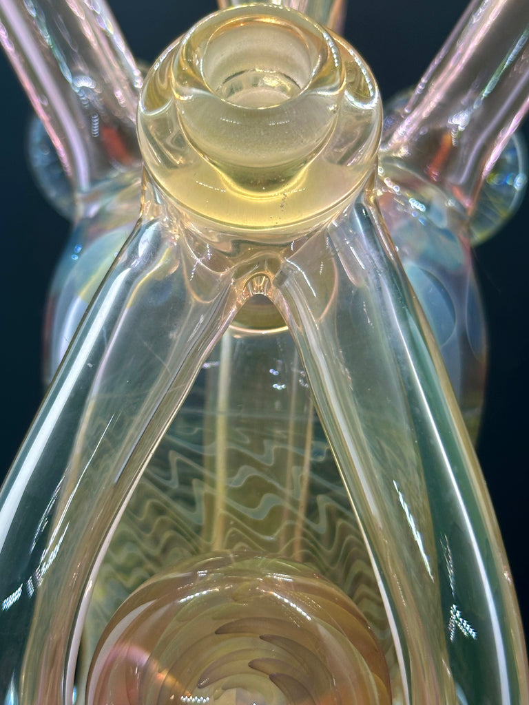 Hardcore Toke x Bowl Pusher collab 3x2 fumed jrain. Features three fumed attachments and various fumed patterns.