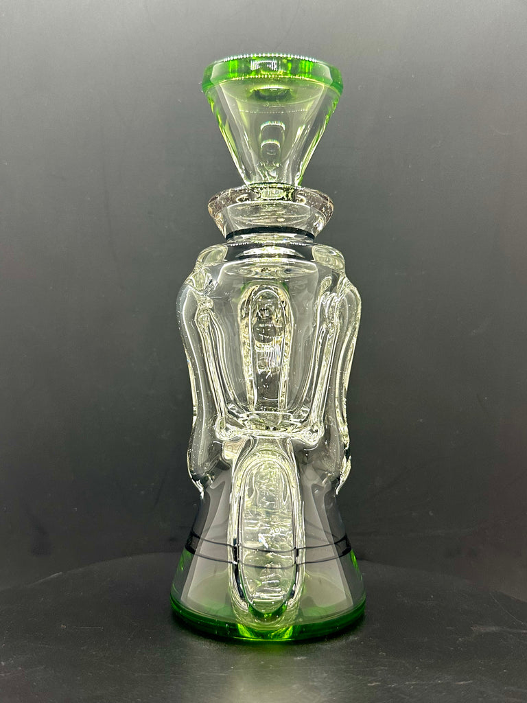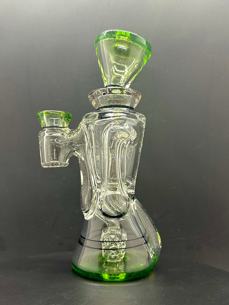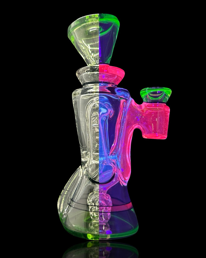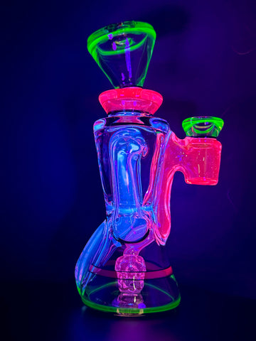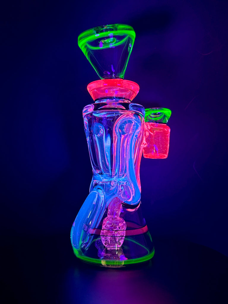 BRAND NEW 2025 Rycrafted double uptake gill recycler made in blue-v, ion, lucy, with jet black lip wraps. 7". 12 hole perc.